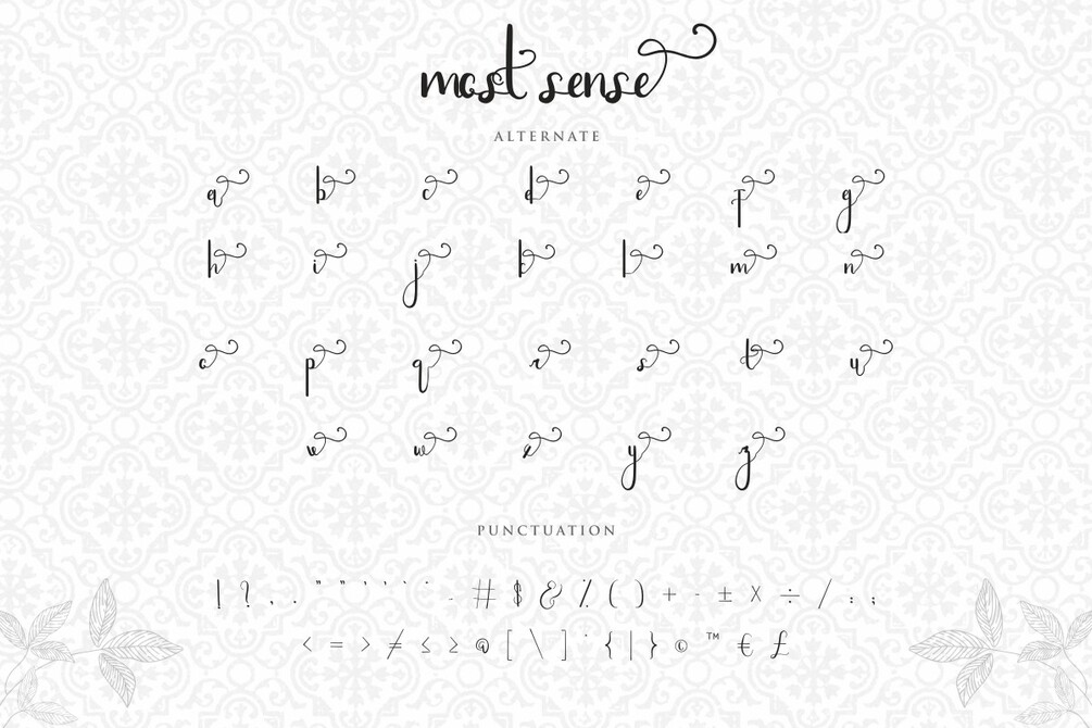 Most Sense Font Works great on PC & Mac. Accessible in the Adobe Illustrator, Adobe Photoshop, Adobe InDesign, even work on Microsoft Word. It’s also PUA Encoded Characters – Fully accessible without additional design software.