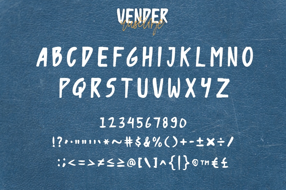 Vender Rustime Font Duo comes with many international languages characters glyphs. This font will suits many projects categories : (with extended license) Logo type, flyer, stationery, business card, signage, flyer, brochure etc. With your creativity, there’s no limit using with this font.